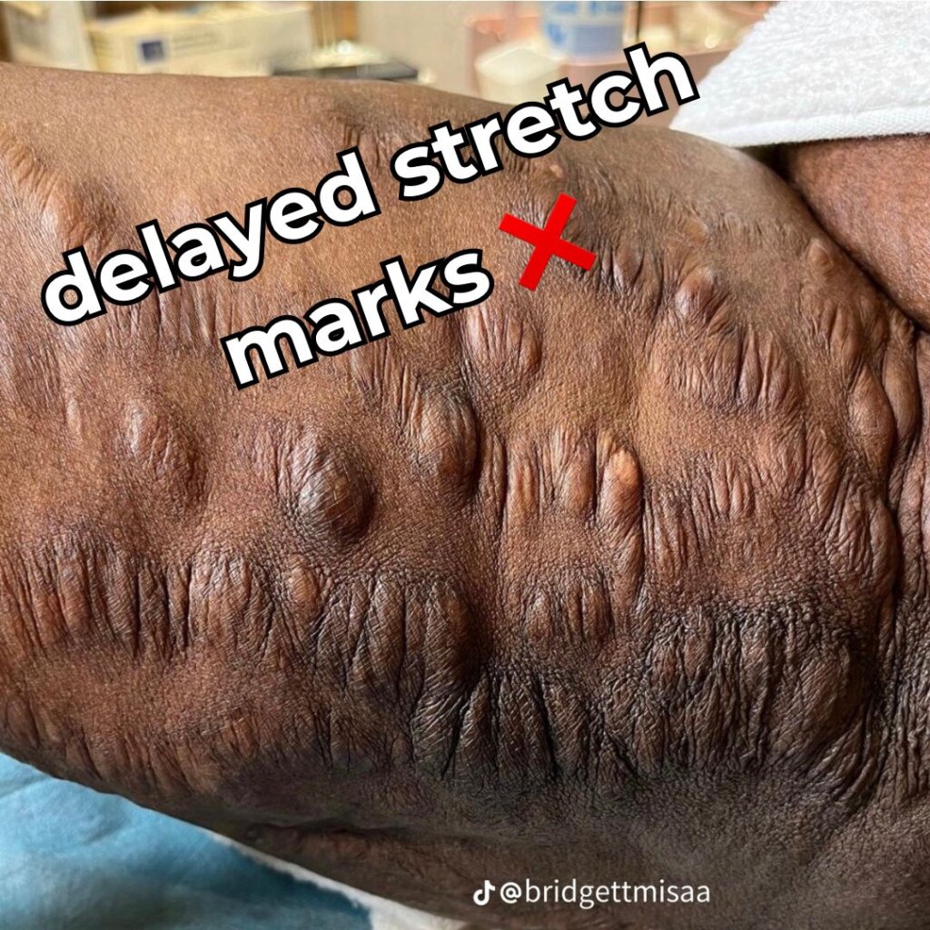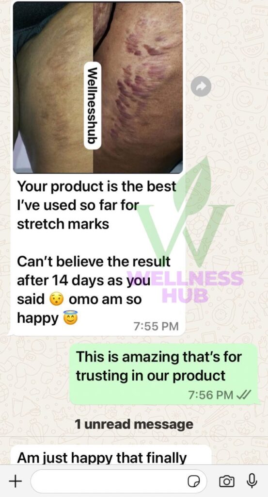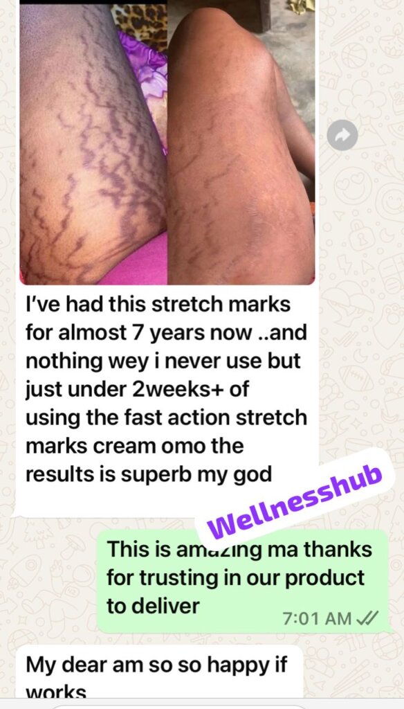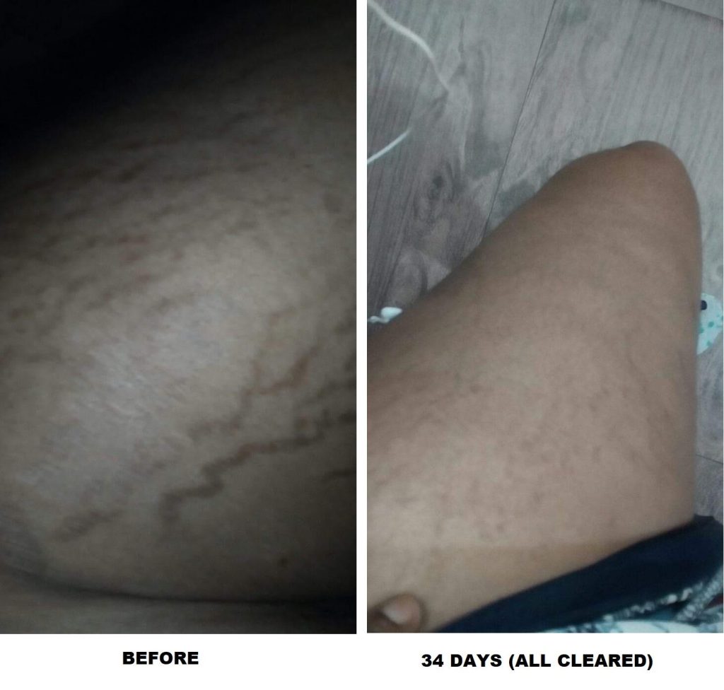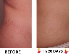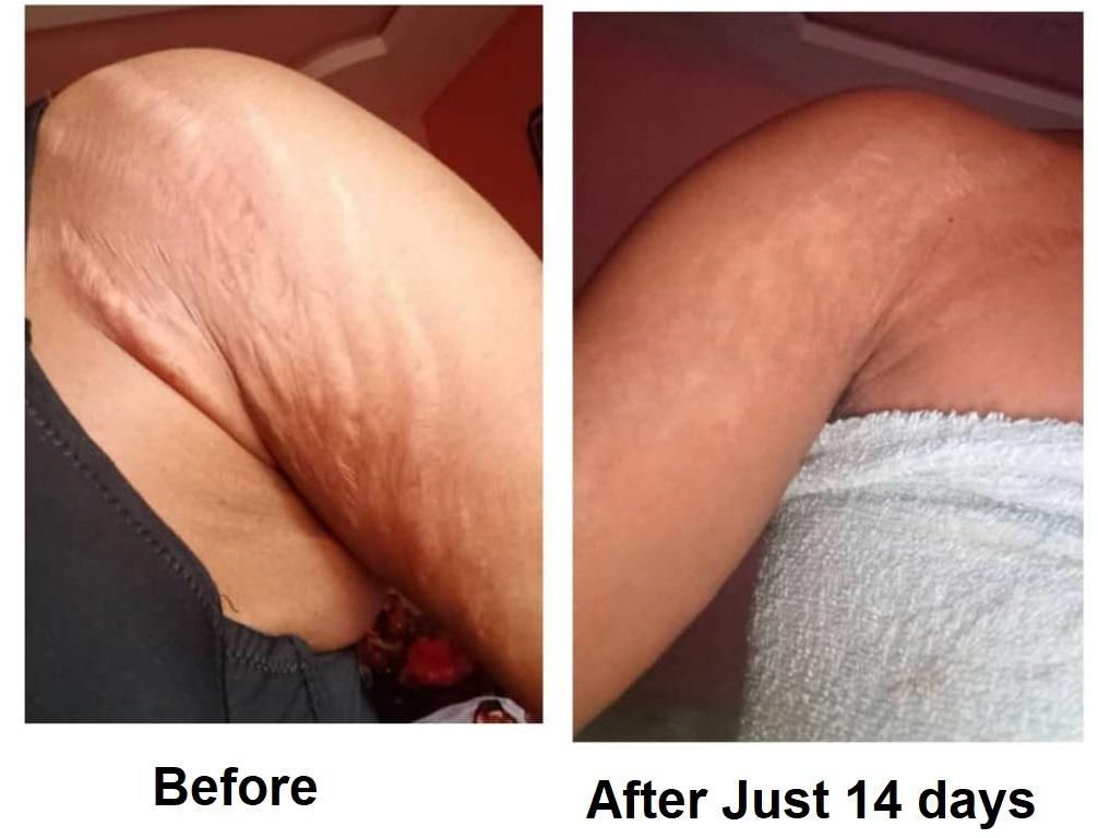 Clears all types of stretch marks, old, new, pregnancy marks, harsh cream stretch marks, etc